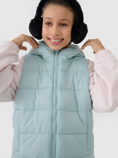 4F JUNIOR Dziewczęcy bezrękawnik puchowy pikowany 4F 4FJWSS25TVJAF166  turkusowy TurkusowyDziewczęcy bezrękawnik puchowy pikowany 4F 4FJWSS25TVJAF166 - turkusowy promocja