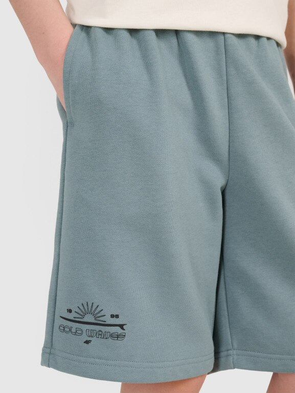 Turkusowe spodenki dresowe chłopięce 4F to energetyczny akcent w letniej garderobie każdego chłopca. Intensywny odcień zieleni świetnie komponuje się z białymi i szarymi t-shirtami, a dzięki oversizowemu krojowi luźno opływają sylwetkę, zapewniając pełną swobodę ruchu – idealne zarówno na boisko, jak i do miejskich spacerów.