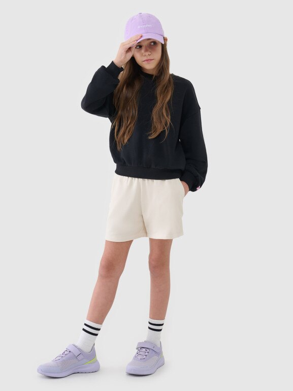 Dziewczęce spodenki dresowe 4F 4FJWSS25TSHOF470 - beżowe