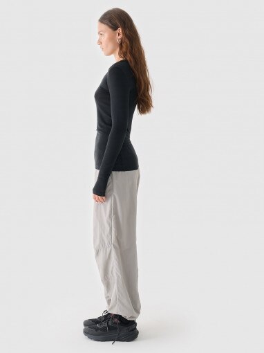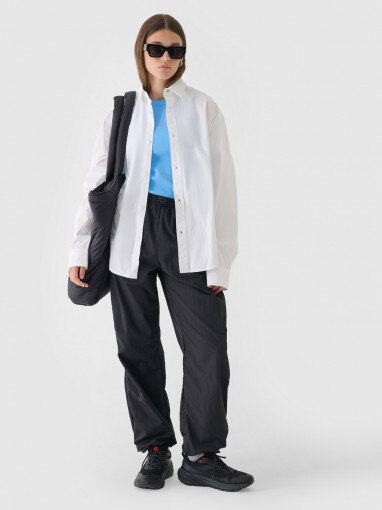 Od lat staramy się spełniać oczekiwania przedstawicielek płci pięknej darzących sympatią zestawy w sportowym, casualowym i streetwearowym stylu. Wymagające entuzjastki mody nie przejdą obojętnie obok eleganckich spodni tkaninowych z oferty firmy Outhorn obecnej w branży odzieżowej od lat 90. XX wieku. Zwężane nogawki sprawiają, że modele z tej kategorii świetnie układają się na ciele i podkreślają atuty kobiecej sylwetki. Możesz je zestawić z basicowym t-shirtem lub postawić na nieco bardziej eleganckie rozwiązania, na przykład koszula i marynarka lub bluzka z hiszpańskim dekoltem. Nasz asortyment to bogata gama produktów od topowych marek. Przygotuj ulubioną herbatę, usiądź wygodnie w fotelu i przeglądaj najnowsze kolekcje lub wyprzedaże. O specjalnych akcjach promocyjnych możemy informować Cię e-mailowo, jeśli zapiszesz się do newslettera. Zrób to teraz, żeby nigdy więcej nie przegapić materiałowych spodni damskich w atrakcyjnych cenach!